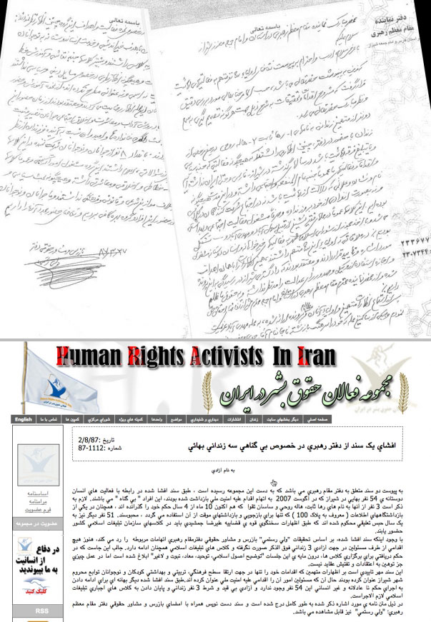 ٨ ـ خانم سوهیر باالحسن رئیس فدراسیون بین المللی جامعه های حقوق بشر و آقای جو استارک معاون بخش خاورمیانه و شمال آفریقا دیده بان حقوق بشر طی نامه ای خطاب به محمود احمدی نژاد رئیس جمهور ایران نگرانی شدید خود را از سرنوشت ۷ تن از اعضای جامعه بهائیان که در زندان بسر می برند، اعلام کردند . فریبا کمال آبادی ، مهوش ثابت ، عفیف نعیمی ، جمال الدین خانجانی ، سعید رضایی ، بهروز توکلی و وحید تیز فهم اعضای گروه هماهنگ کننده ملی بهائیت در ایران هستند که با اطلاع حکومت تاسیس شده و هدف آن کمک به جامعه ٣۰۰هزار نفری بهائیان در کشور است .در این نامه آمده است : ما از مسئولین جمهوری اسلامی ایران مصرانه می خواهیم مکان حبس این هفت نفر ، اتهامات دقیقی که علیه آنها مطرح شده و تارخ محاکمه آنها را به اطلاع برسانند. ما همچنین از شما مصرانه می خواهیم به ناظران مستقل بین الملی اجازه دهید بر محاکمه آنها نظارت داشته باشند . حق محاکمه عادلانه شامل جلسه استماع علنی ، منع تبعیض دینی و حق آزادی مذهب است . این حقوق همگی در میثاق حقوق مدنی و سیاسی که توسط ایران تصویب شده آمده است .